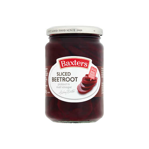 Description Baxters Sliced Beetroot is pickled in malt vinegar and sweetened with saccharin, offering a tangy and slightly sweet flavour. It's a ve...